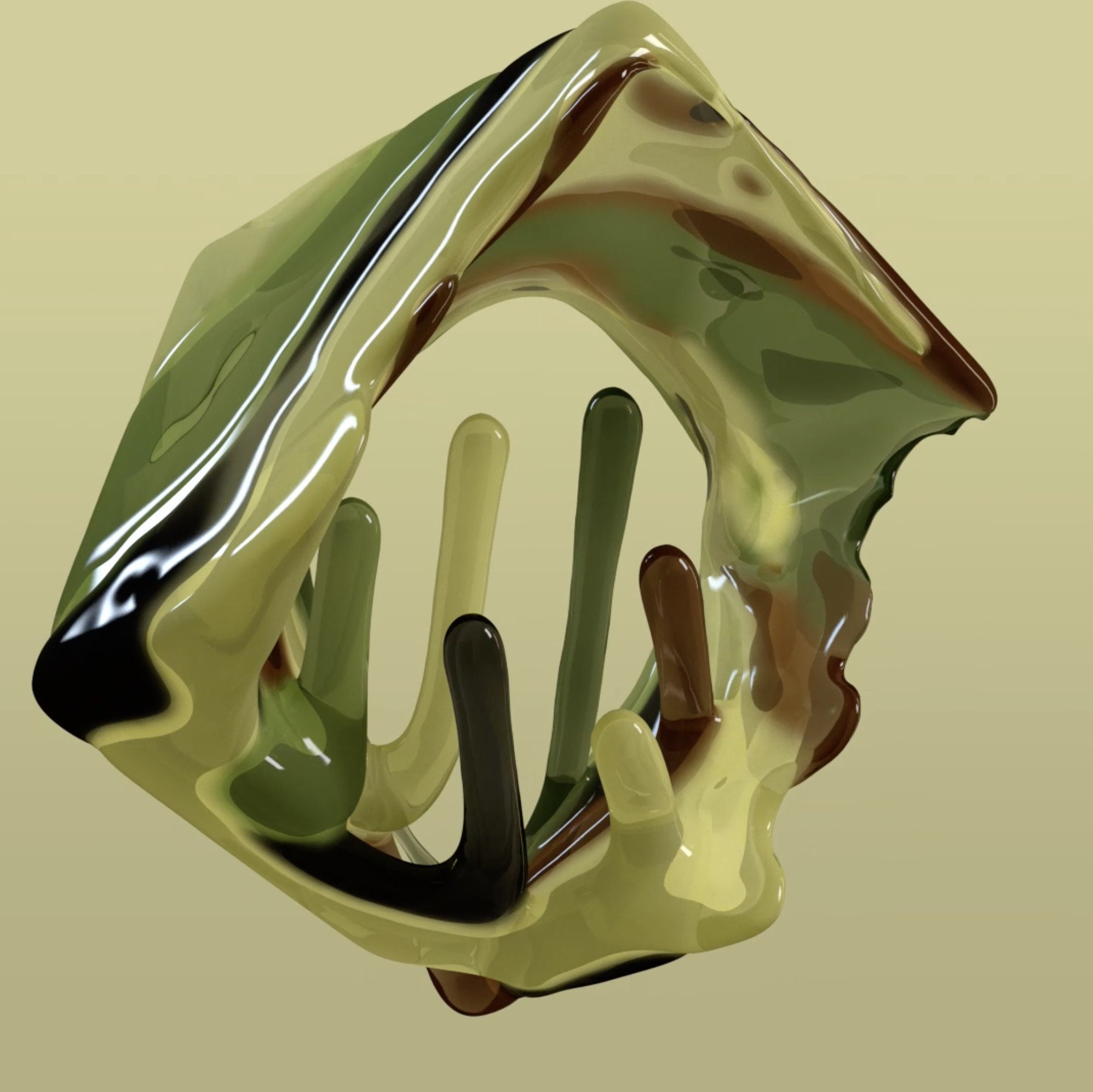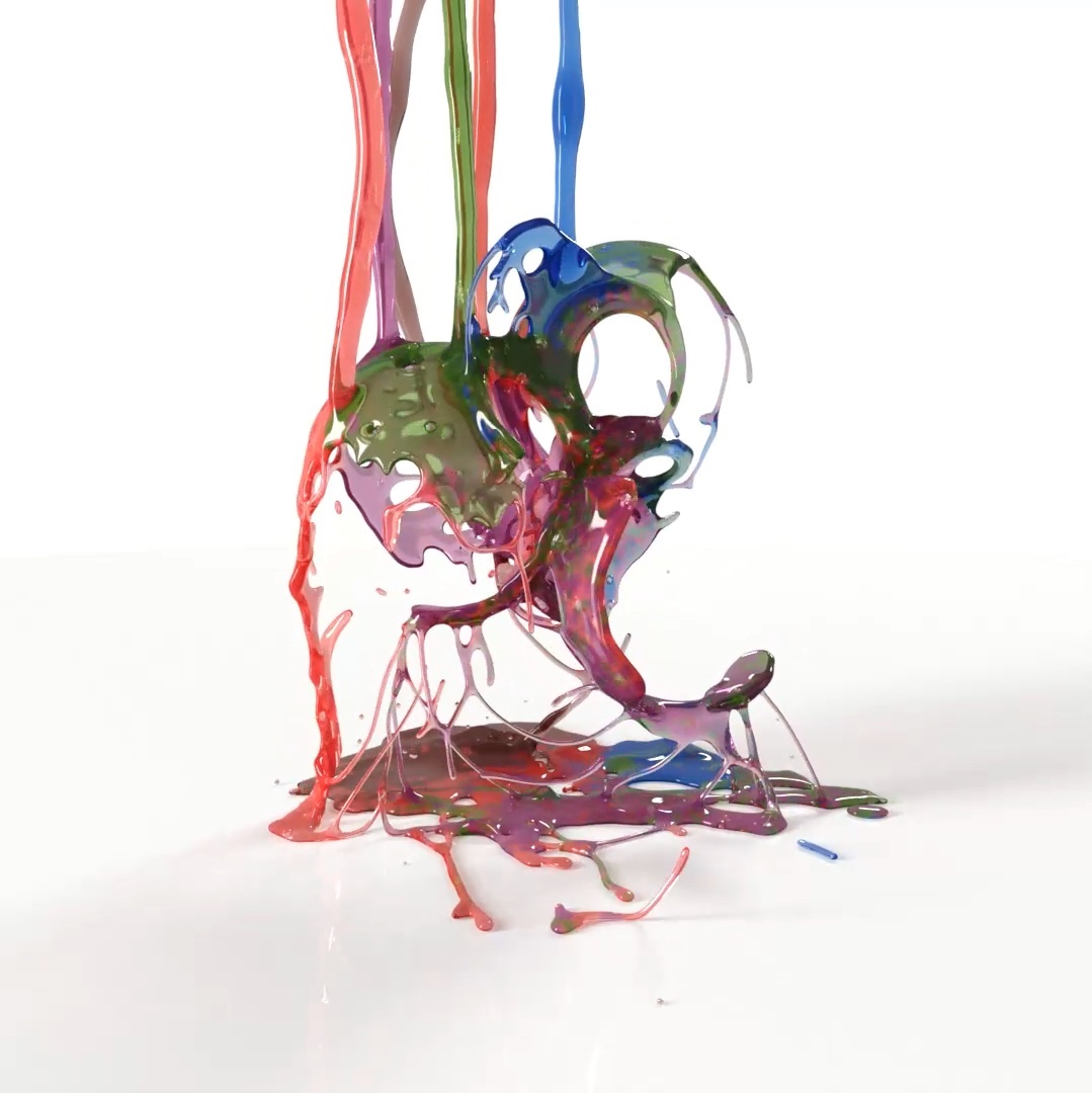 XParticles viscous fluid simulation using xpFluidPBD solver. A simulation creating a camouflage patterns by sticking liquid to a surface.